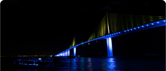 - 2-hour nighttime cruise featuring the breathtaking Skyway Bridge Light Show.