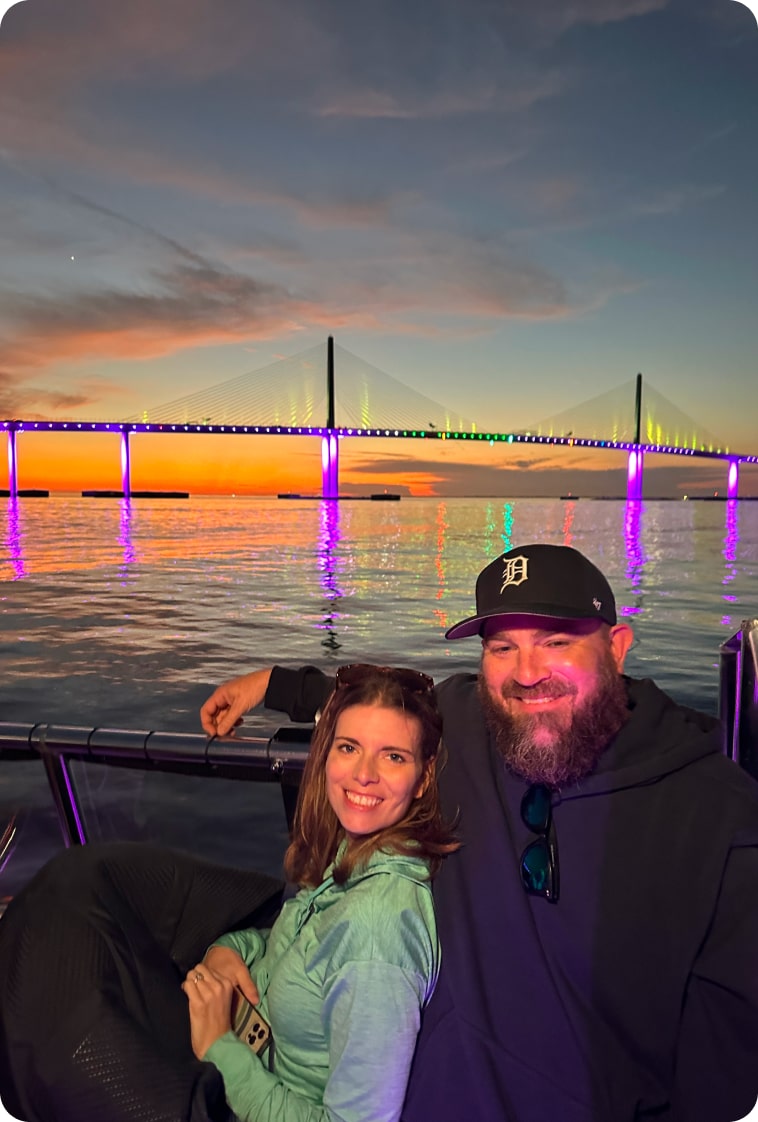 Embark on one of our serene sunset cruises and experience the best of St. Petersburg’s breathtaking waterways. Whether you’re looking for playful dolphins, soaking in a vibrant sunset, or admiring the scenic beauty of the coastline, each cruise offers a unique way to experience the coastal lifestyle of St. Pete. With options to view spectacular local bridges lit up at night or enjoy a peaceful island stop, you’ll have plenty of opportunities to relax and take in the natural beauty around you. Our professional, friendly crew ensures your comfort and a memorable experience as you create lasting memories on the water.
